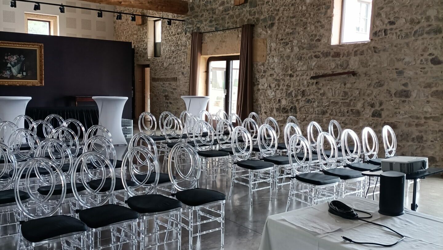 Chauffées/climatisées, toutes les salles du Château du Souzy sont aussi équipées du WIFI, d’écrans et de matériels de qualité : vidéoprojecteur, micros, sono.